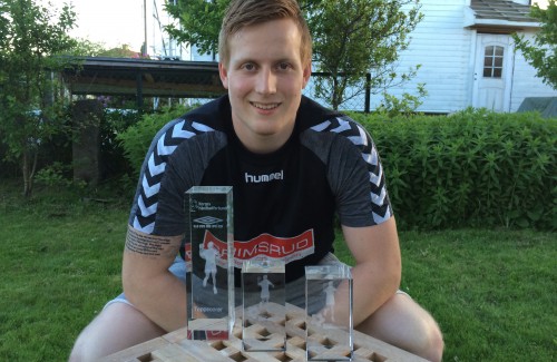 Av samtlige toppspillere i forrige sesongs GRUNDIGliga tok Rasmus Carlsen ligaens toppscorertittel med 146 mål. Senere ble han også kåret til «Årets nykommer» og tatt ut som midtspiller på «Årets lag». Vi mener derfor GRUNDIGligaens beste spiller befinner seg i Halden. Nylig fikk Rasmus de synlige bevisene på sine titler overlevert fra Norsk Topphåndball.