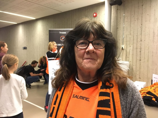 Karin hjelper til med alt som er! Hun kommer tre timer før kampstart og drar hjem sist. Hun gjør alt fra å vaske gulv, hjelper til i kiosken, dekker på i sponsorrommet og ellers der det er behov.